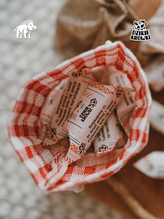 DzikieKrówki to coś więcej niż tradycyjne, ciągnące się cukierki. To spersonalizowany upominek z charakterem, który wywołuje uśmiech i zostaje w pamięci na długo. Wierzymy, że najlepsze prezenty to te, które łączą autentyczny smak z osobistym przekazem. Dzięki możliwości pełnej personalizacji opakowań każda krówka staje się skutecznym narzędziem marketingowym lub wzruszającym podziękowaniem dla gości. To słodka podróż do czasów dzieciństwa, zamknięta w nowoczesnej i estetycznej oprawie graficznej przygotowanej przez DzikiStyl.